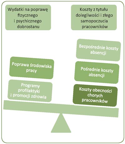 - Kosztów działań skierowanych na ograniczenie absencji chorobowej, na które składają się: