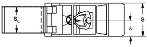 Do narysowania wyżej omówionego uproszczonego modelu wózka w rzucie z góry niezbędne są dane dotyczące szerokości wózka i ładunku oraz położenia pionowej płaszczyzny symetrii fotela operatora względem krawędzi wózka – jak to uwidoczniono przykładowo na rysunku 4. Dane te można otrzymać albo z danych technicznych producenta wózka, albo z pomiarów. Można przyjąć, że punkt środkowy między oczami operatora wózka w stanie gotowości do jazdy znajduje się w płaszczyźnie symetrii fotela.
