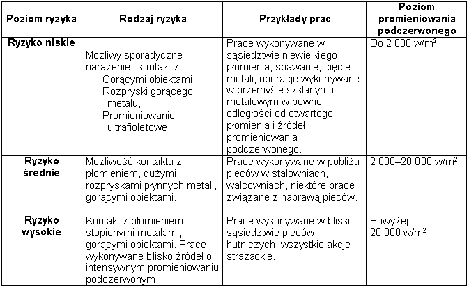 W tabeli 1 podano przykłady prac wykonywanych na stanowiskach gorących z uwzględnieniem poziomu ryzyka.