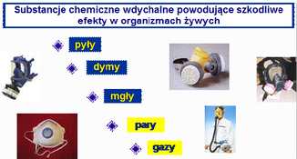 Substancje chemiczne występujące w atmosferze środowiska pracy, mogą występować również w postaci par, gazów, pyłów, dymów i mgieł.
