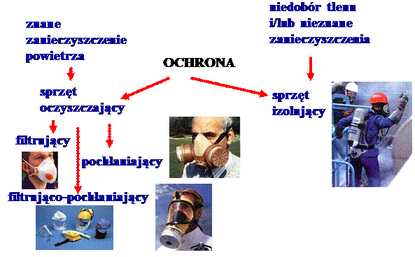 Przy rozpatrywaniu potrzeby wyposażenia pracowników w sprzęt ochrony układu oddechowego zarówno ilość tlenu w powietrzu jak i jego ciśnienie cząstkowe muszą być brane pod uwagę jednocześnie.