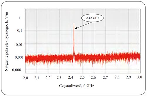 Rys. 2. Widmo częstotliwości pola elektrycznego emitowanego przez myszkę bezprzewodową z pasma (2-3) GHz