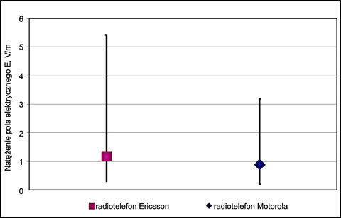 Wartości skuteczne natężenia pola elektrycznego 100 kHz - 3 GHz zmierzone na 16 stanowiskach pracy dyspozytorów w punktach alarmowania i na stanowisku dyspozytora w Miejskim Stanowisku Kierowania, zarówno zmierzone szerokopasmowo wartości chwilowe, jak i zarejestrowane w ciągu 10 minut, nie przekraczają wartości dopuszczalnej dla ekspozycji pracowników bez ograniczeń czasu jej trwania, określonej w przepisach krajowych dotyczących ogółu pracowników [9], wartości dopuszczalnych dla ekspozycji kobiet w ciąży [10] i pracowników młodocianych [11] oraz wartości dopuszczalnej w miejscach dostępnych dla ludności [12]. Wymienione wartości dopuszczalne natężenia pola elektrycznego nie są przekroczone także bezpośrednio przy obudowach radiotelefonów, fiderach i gniazdach połączeniowych, w przypadku, kiedy ich stan techniczny jest poprawny, np. zamontowane są szczelne, nieuszkodzone ekrany elektromagnetyczne.