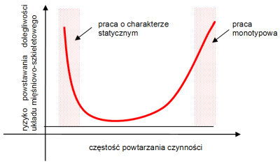 Występuje pewien zakres częstości ruchów, przy którym ryzyko powstawania dolegliwości jest minimalne. Częstość optymalna jest zależna od wartości obciążenia zewnętrznego a także od pozycji ciała podczas pracy i powinna być określona indywidualnie dla każdej z wykonywanych czynności. W przypadku prac polegających na wykonywaniu czynności powtarzalnych główne zagrożenie związane jest ze zbyt dużą częstością powtarzania określonych czynności roboczych [5].