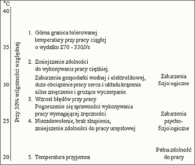 Rys. 1 Wpływ temperatury na stan fizyczny i psychiczny człowieka [5]