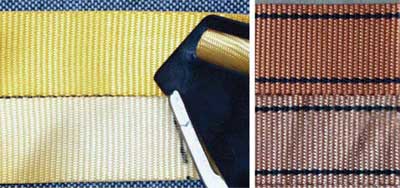 Fot. 6. Odbarwienia (zblaknięcia) taśm włókienniczych