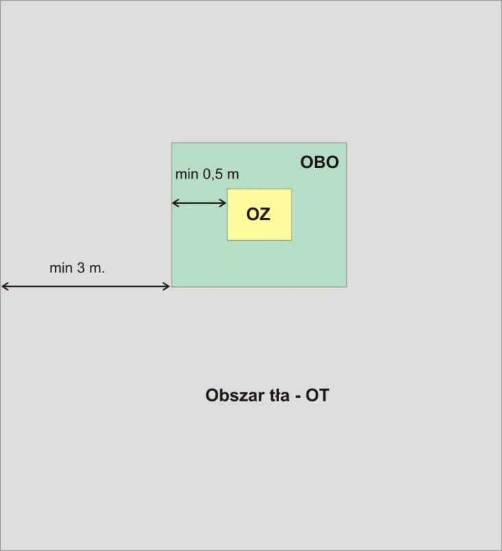 Obszar tła (OT) - obszar o szerokości co najmniej 3 m, sąsiadujący z obszarem bezpośredniego otoczenia, w obębie granic przestrzeni. Zwyczajowo przyjmowany jest na podłodze.