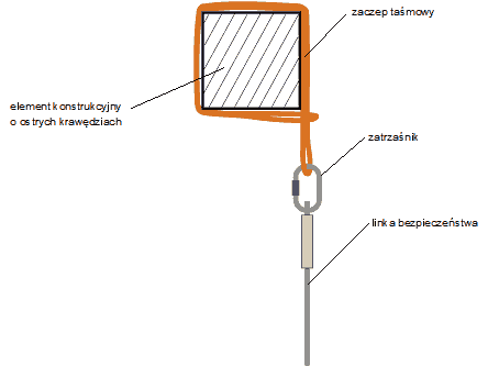 Rys. 1. Przykład opasania zaczepu taśmowego wokół elementu konstrukcyjnego o ostrych krawędziach