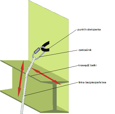 Rys. 2. Przykład ruchów zakończenia linki bezpieczeństwa po krawędzi belki na stanowisku pracy