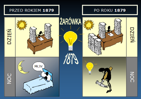 Wynalezienie żarówki sprawiło, że dzień pracy wydłużył się i praca stała się możliwa w porze przeznaczonej do wypoczynku - w nocy.