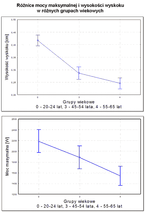 Podobnie w przypadku parametrów dynamicznych, wraz z wiekiem zmniejszeniu ulegają praca i moc podczas wyskoku pionowego (Rys. 4) [4].