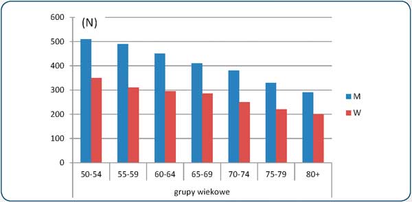 Okresowe badania występowania MSDs w różnych grupach wiekowych w państwach Unii Europejskiej [1] wskazują na zwiększające się wraz z wiekiem występowanie MSDs (rys. 1.), przy czym najwyższy procent populacji osób uskarżających się na te dolegliwości występuje między 40. a 54. rokiem życia. W grupie 55+ występuje nieznaczny spadek liczby uskarżających się osób.