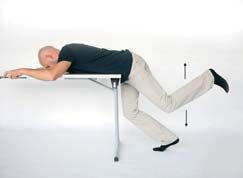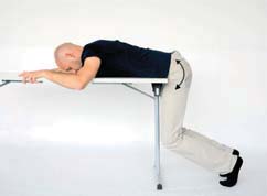 Opis: Połóż się na brzuchu, na blacie stołu. Nogi ugnij w stawach biodrowych i kolanowych, koniuszki palców do-tykają podłogi. Rękami złap za krawędzie stołu. Napnij mięśnie odcinka lędźwiowego, postaraj się nieznacznie unieść miednicę do góry, nie pomagając sobie przy tym nogami. Wytrzymaj kilka sekund, rozluźnij, opuść miednicę i pośladki w kierunku podłogi. Pamiętaj: 1) Nie powinieneś odczuwać bólu podczas wykonywanego ćwiczenia. 2) Przez większość czasu pozwól, by miednica zwisała swobodnie, a przez 1/3 czasu unieś ją i napnij mięśnie. Liczba powtórzeń: 10 Serie: 3 (jedna seria obejmuje 10 powtórzeń) Rozciągnięcie o średnim i znacznym natężeniu mięśni odcinka lędźwiowego kręgosłupa. |