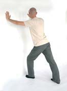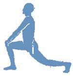 Wykonaj wykrok do przodu. Zwróć uwagę, aby noga w tyle, a także tułów były w miarę możliwości wyprostowane. Kolano nogi wykrocznej nie powinno wyprzedzać stopy. |