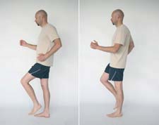 Opis: Stań na podłodze i spróbuj chodzić w miejscu. Wykonuj płynny ruch rąk i nóg, prawą ręką i lewą nogą naprzemiennie ruszaj raz z przodu raz z tyłu (jak podczas marszu). Pamiętaj: 1) Utrzymuj wyprostowaną pozycję ciała. 2) Jeśli chcesz zwiększyć intensywność wykonywanych ćwiczeń - nogi unoś wyżej, a rękoma wykonuj większe wymachy. Liczba powtórzeń: 2-3 minuty bez przerwy Długość przerw: 1-5 minut pomiędzy seriami Oczekiwany efekt: Poprawa krążenia krwi w całym organizmie. Przy obszernych ruchach poprawa ruchomości stawów międzykręgowych. |
