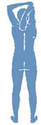 Podnieś lewą rękę, zegnij ją w łokciu, tak jakbyś chciał dotknąć łopatki. Drugą rękę połóż na łokciu lewej ręki i naciskaj na niego w dół do pierwszego uczucia rozciągania. |