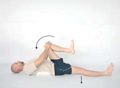 Opis: Połóż się na plecach, ugnij jedną nogę i chwyć udo ręka-mi. Spróbuj wyprostować nogę w kolanie, aż poczujesz wyraźne uczucie ciągnięcia. Wytrzymaj w takiej pozycji około 10 sekund. Rozluźnij i zmień nogę. Liczba powtórzeń: 10 Serie: 1-2 (jedna seria obejmuje 10 powtórzeń) Długość przerw: 20 s pomiędzy seriami |