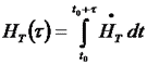 Jeżeli znana jest dawka równoważna pochodząca od narażenia wewnętrznego w tkance lub narządzie, otrzymana w jednostce czasu, czyli pochodna HT tej dawki względem czasu, to obciążającą dawkę równoważną otrzymaną w czasie τ określa wzór: