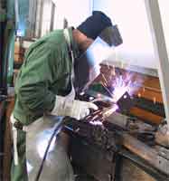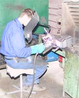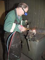 Spawanie gazowe metodą MIG-MAG (drut SPG2 o średnicy 1,0 mm; materiał spawany - stalowe haki, prąd spawania 200 A)