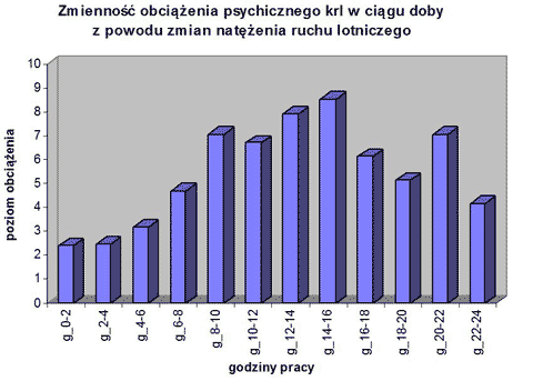Rys. 2. Zmienność obciążenia psychicznego krl w ciągu doby z powodu zmian natężenia ruchu lotniczego