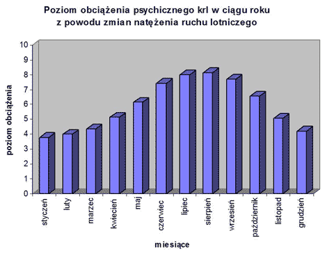 Rys. 3. Zmienność obciążenia psychicznego krl w ciągu roku z powodu zmian natężenia ruchu lotniczego