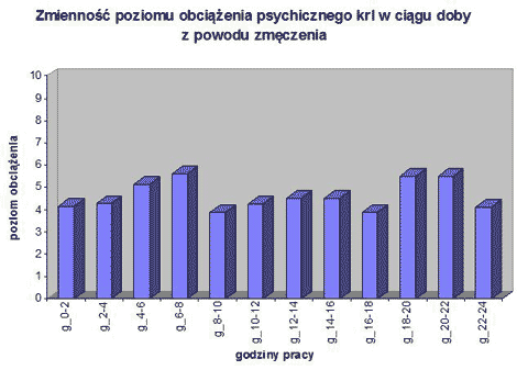 Rys. 5. Zmienność poziomu obciążenia krl w ciągu doby spowodowanego subiektywnym poczuciem zmęczenia