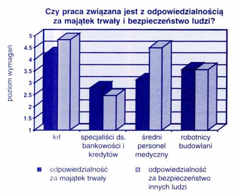 Rys. 2. Zastawienie wymagań związanych z odpowiedzialnością za majątek trwały i bezpieczeństwo ludzi w grupie krl i innych grup zawodowych