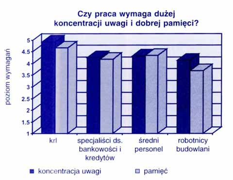 Rys.1. Zestawienie wymagań koncentracji uwagi i wykorzystania pamięci w grupie krl i innych grup zawodowych