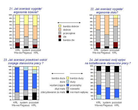 Komfort pracy i rozmieszczenie urządzeń manualnych oceniane jest podobnie we wszystkich lokalizacjach i oceny te są z reguły (50-60%) dobre i bardzo dobre, oceny złe i bardzo złe stanowią ok. 15%.
