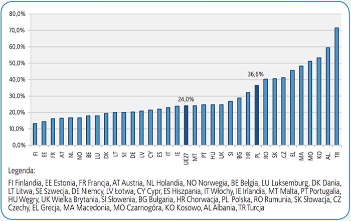 Jak wskazują wyniki badań w zestawieniu ze średnią dla krajów europejskich, Polacy: