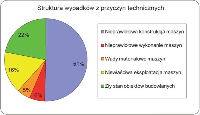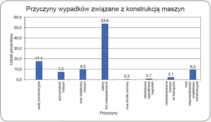 Rys. 2. Udział procentowy wypadków z przyczyn związanych z konstrukcją maszyn