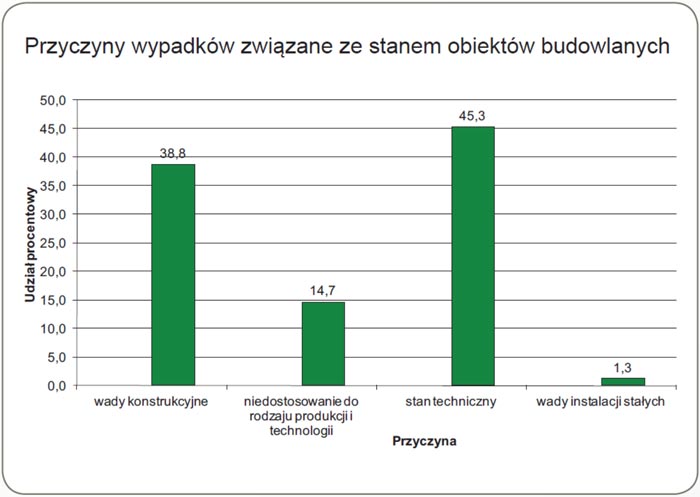 Rys. 4. Udział procentowy wypadków z przyczyn związanych ze stanem obiektów budowlanych