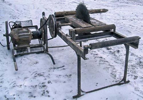 Fot. 1. Brak osłon piły tarczowej, elementów przeniesienia napędu i klina rozszczepiającego
