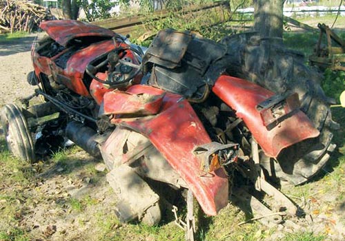 Fot. 2. Wypadek z udziałem ciągnika często prowadzi do przygniecenia rolnika