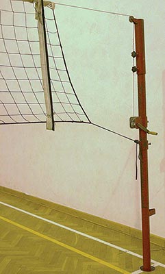 Fot. 1. Stopnie i występy w podłogach szkolnych są źródłem zagrożenia potknięciem i upadkiem Fot. 2. Nieosłonięty słupek od siatki na sali gimnastycznej może spowodować poważne urazy w przypadku uderzenia z dużą prędkością