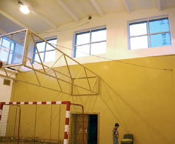 - Eliminowanie zagrożeń lub ich źródeł, np. zapewnienie odpowiedniej stateczności przyrządom gimnastycznym i meblom szkolnym (fot.), albo korzystanie przy projektowaniu minimalnych odległości barier i ogrodzeń, z danych dotyczących wymiarów antropometrycznych dzieci w wieku szkolnym [10].