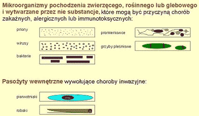 Ta szeroka definicja obejmuje zatem nie tylko drobnoustroje wywołujące choroby zakaźne, utożsamiane do niedawna w wielu opracowaniach z omawianą grupą czynników, ale również mikro- i makroorganizmy wywołujące choroby i dolegliwości o podłożu alergicznymAlergia