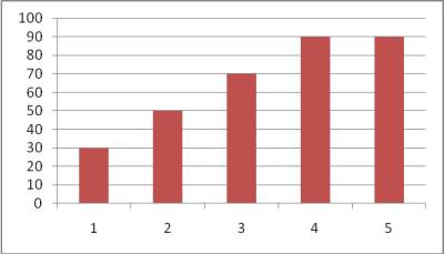 3. Należy ustalić czas trwania ekspozycji na środowisko wirtualne w każdym dniu planowanej sesji zajęć; zaleca się przyjęcie czasów jak na rysunku 10 – w przypadku osób bez skłonności do choroby lokomocyjnej lub na rysunku 11 - w przypadku osób ze skłonnością do choroby lokomocyjnej; w przypadku braku informacji o występowaniu lub braku skłonności do choroby symulatorowej zaleca się rozpoczęcie stosowania czasów według rysunku 10, przy czym można wprowadzić pewne zmiany po obserwacji zachowań osób eksponowanych; w przypadku osób ze skłonnością do choroby lokomocyjnej po czterech dniach zaleca się zrobienie w sesji zajęć 1-3 dniowej przerwy, ale nie dłuższej niż pięciodniowej, względnie skrócenie czasu ekspozycji w piątym dniu.