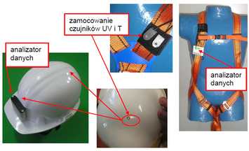 elektronicznego systemu do monitorowania temperatury oraz dawki promieniowania nadfioletowego, umożliwia w sposób pośredni monitorowanie stopnia degradacji tworzyw sztucznych oraz materiałów włókienniczych, czyli monitorowanie zachowania parametrów ochronnych. Dzięki temu można osiągnąć poprawę bezpieczeństwa pracowników narażonych na agresywne czynniki środowiska pracy, ustalić właściwy (w zależności od szybkości zużycia środków ochrony indywidualnej) czas przeglądów technicznych i wymiany sprzętu na nowy oraz zapis „cyklu pracy i narażenia” środków ochrony indywidualnej na czynniki środowiskowe podczas ich eksploatacji.