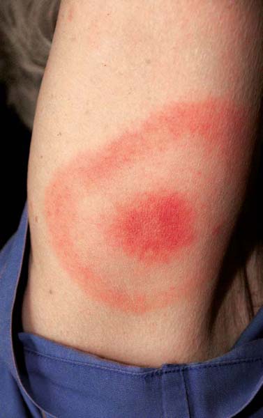 Fot. 5. Obrączkowaty rumień wędrujący, zmiana skórna typowa dla wczesnej boreliozy.