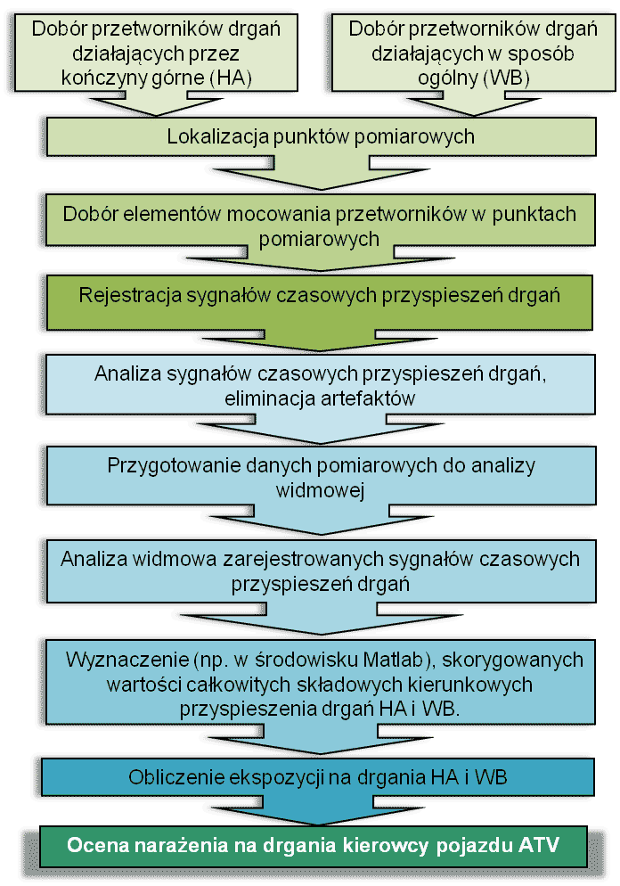 Rys. 1. Schemat algorytmu badań drgań mechanicznych działających na pracowników wykorzystujących pojazdy terenowe typu ATV