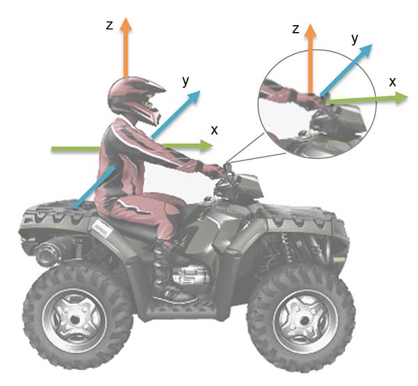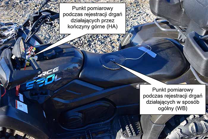 Fot. 1. Lokalizacja punktów pomiarowych podczas badań drgań mechanicznych działających na pracowników/kierowców pojazdów typu ATV