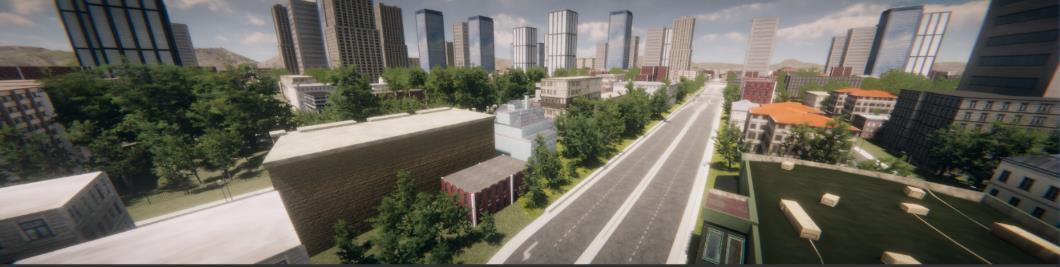 Rys. 1. Środowisko wirtualne aplikacji opracowanego symulatora jazdy (aut. Mateusz Matuszewski)