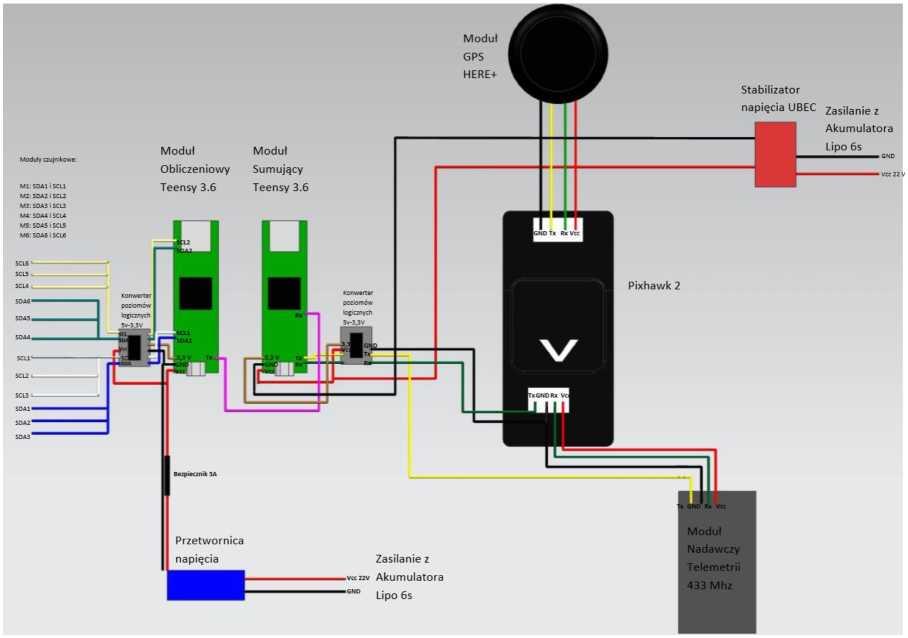 Rys. 4. Schemat połączeń komponentów UAV związanych z rejestracją i przetwarzaniem danych