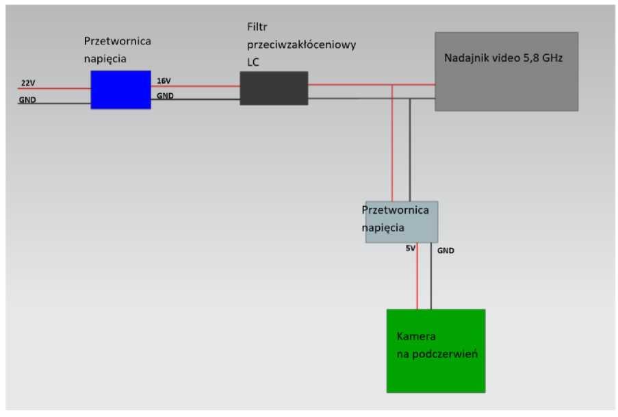 Rys. 5. Schemat połączeń komponentów UAV związanych z rejestracją obrazu wideo