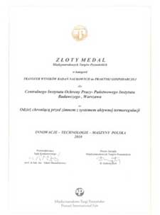 - Złoty Medal Międzynarodowych Targów Poznańskich w kategorii „transfer wyników badań naukowych do praktyki gospodarczej"