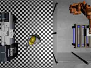 W ramach pierwszego etapu projektu badawczego opracowano układ neuronowy umożliwiający określenie przestrzennego położenia obiektu wnikającego do strefy monitorowanej przez kamery. W szczególności układ ten pozwala na określenie przestrzennych relacji względem innych przedmiotów znajdujących się w tej strefie (np. odległości pracownika od pracującej maszyny). Przygotowano również implementację programową (w komputerze klasy PC) opracowanego układu neuronowego. Opracowano specjalistyczne oprogramowanie komputerowe umożliwiające wygenerowanie (z wykorzystaniem technik rzeczywistości wirtualnej) obrazów stereoskopowych. Następnie przygotowano elementy wirtualnego środowiska niezbędne do badania układu neuronowego (Rys.1)
