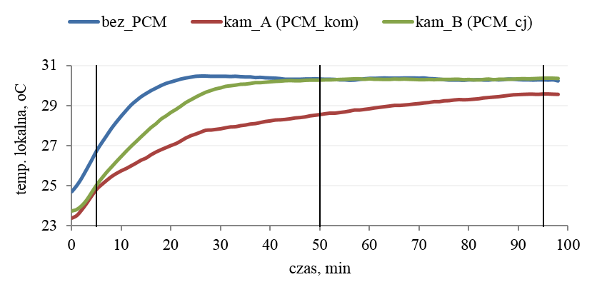 Na postawie uzyskanych wyników badań stwierdzono, że zastosowanie wytypowanych kamizelek (zarówno A jak i B) powodowało obniżenie oraz spowolnienie wzrostu m.in. wartości temperatury mierzonych na skórze, bieliźnie oraz w samej kamizelce w porównaniu z wariantem z kamizelką bez wypełnienia PCM. Nie odnotowano natomiast znaczących różnic w obliczonym współczynniku akumulacji ciepła czy subiektywnej ocenie ochotników dla badanych kamizelek.