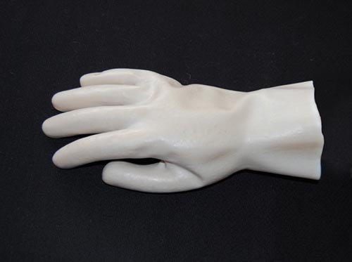 Projekt V.B.10. Model rękawicy otrzymanej z mieszanki lateksu XNBR sieciowanego siarką (wariant 1 XNBR 0 ZnO /S)z wykorzystaniem formy porcelanowej ręki