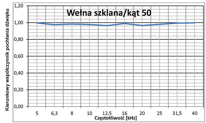 Projekt II.B.11. Wartości kierunkowego współczynnika pochłaniania dźwięku wełny szklanej o grubości 50 mm dla kąta padania fali akustycznej 50o